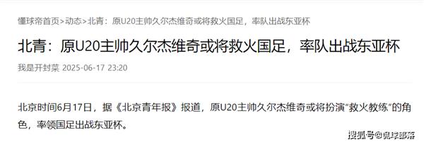 - 06-18伊万离任,久尔杰维奇将带领国足征战东亚杯