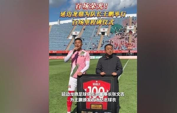 昨天下午,中甲第13轮比赛中,延边龙鼎在主场以1-0战胜了广西平果。在比赛开始前,延边龙鼎为王鹏举办了代表球队的百场里程碑仪式,并颁发了纪念球衣以庆祝他的百场成就。
