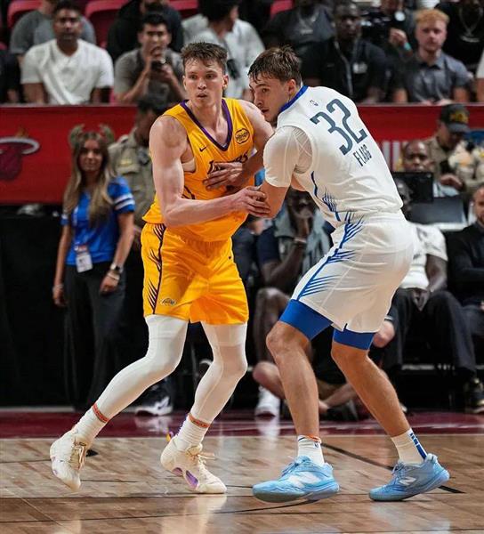 再来看一组数据:2024年夏季联赛中,布朗尼参加了6场比赛,场均上场25.3分钟,取得了7分、3.5个篮板、1.5次助攻和1次抢断,投篮命中率为32.7%,三分命中率仅为13%。那个时候的布朗尼,表现与克内克特相比差距明显,但今年的布朗尼明显有了进步。