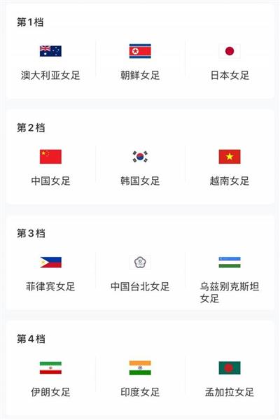 2026年女足亚洲杯的分档情况(根据最新世界排名):