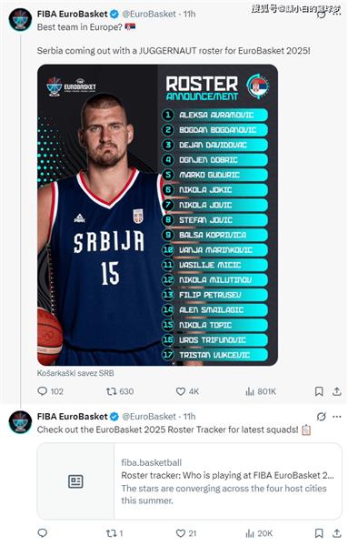 《福布斯体育》记者埃文-斯迪瑞还在社交媒体上公布了参加欧洲锦标赛的现役NBA球员名单: