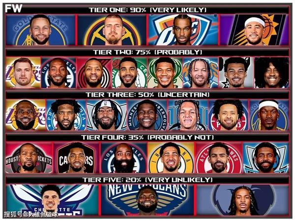 凯文杜兰特、詹姆斯哈登和凯里欧文在目前的球队中退役的可能性非常高。事实上,多诺万米切尔将来可能会离开克利夫兰骑士。特雷杨最近被曝光,不满老鹰没有给自己提供续约合同,引起了他的不满。哈利伯顿患有跟腱损伤,将来可能会被抛弃。