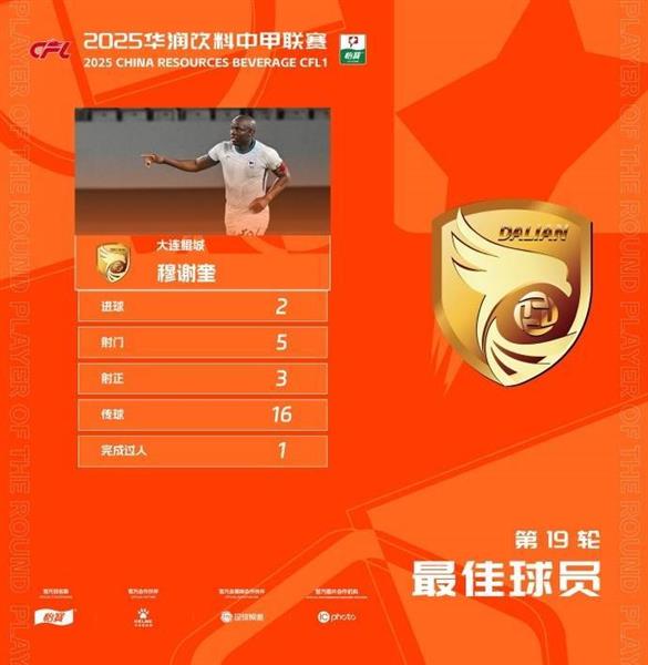 八月六日,大连鲲城球员穆谢奎被选为第19轮中甲最佳球员。
