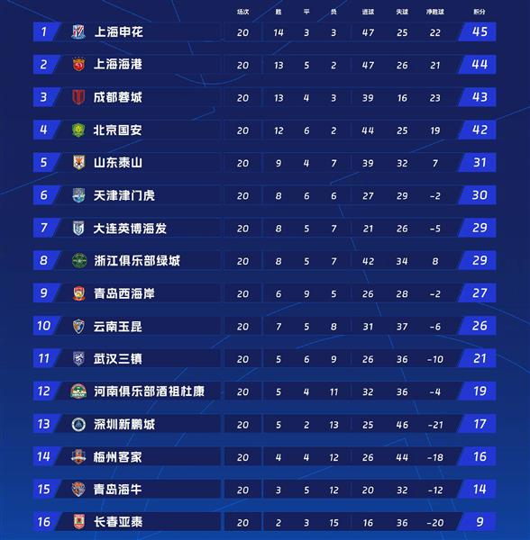足球城新军大连英博海发结束了4连胜,但由于浙江队同样落败,两队同等积分29分,大连英博海发凭借净胜球优势保持了第七名,结束了三连胜的浙江队落到了积分榜第八名。