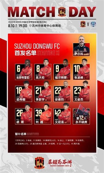 中甲联赛第20轮苏州东吴vs石家庄功夫首发名单