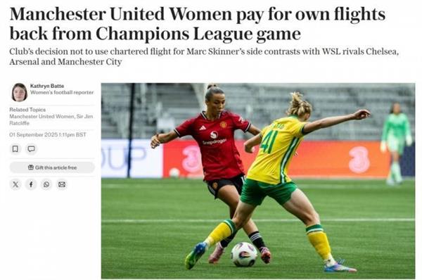 九月一日,据《电讯报》报道,曼联俱乐部没有安排包机,让自己的女足自费购买欧冠客场返程机票。