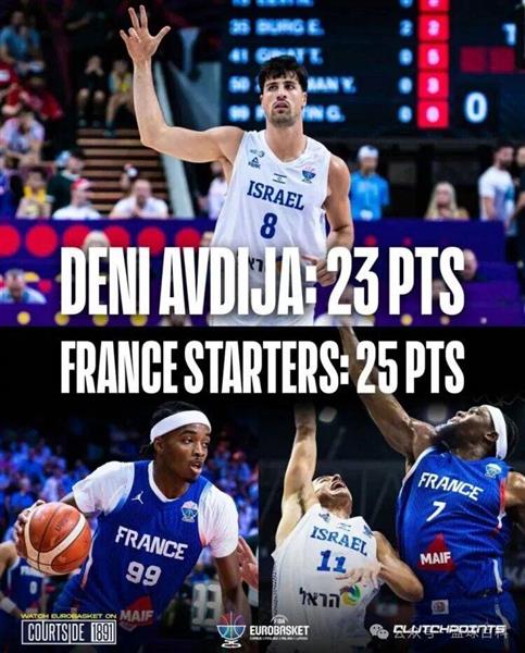 在这场战斗中,开拓者前锋,阿夫迪亚,以色列男篮的核心表现出色,10投7中,高效得到23分8篮板2助攻2抢断;相比之下,法国男篮在这场比赛中首发5人总共只得到25分。