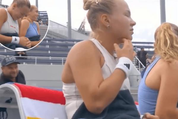 当时,这个人从看台前排给安德耶娃打了电话,转身后穿过护栏直接说话。虽然观众只是打招呼,但两名球员明显感到不安,转身后尴尬地笑了。裁判询问情况时,安德耶娃回应:「他只是打了个招呼」。