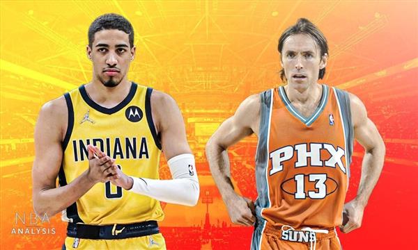 Haliburton在2022-23球季首次入选明星赛,今年的主要传统数据如下:20.7分,3.7篮板,10.4助攻,49%/40%/81%/3分/罚球。;在2005-06赛季,Nash再次获得MVP,传统数据显示:18.8分,4.2篮板,10.5助攻,51%/44%/92%的投篮/三分/罚球,在回合数校正之前,相似度非常高。