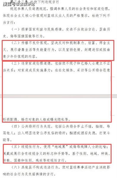 (六) 其他虽然并不构成违法行为,但对篮球赛事活动产生负面影响的社会行为及负面舆论言论。