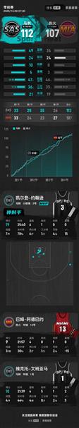 北京时间10月9日NBA季前赛,马刺以112-107击败热火。约翰逊19分6篮板1助攻,韦尔29分12篮板1助攻。