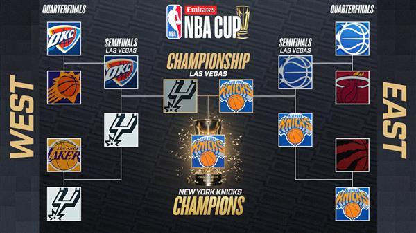 2025-26NBA(原名:季中锦标赛,in-season tournament)11月1日在台湾时间举行,12月14日为准决赛,12月17日为冠军。这场冠军战的举办地点和往年一样,位于拉斯维加斯T-Mobile体育馆。