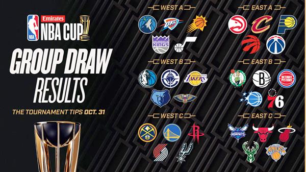 根据2024-25例行赛的记录,小组赛将首先按照特定的规则对全联盟30支球队进行分类,然后随机分配到6个小组,每组5支球队。