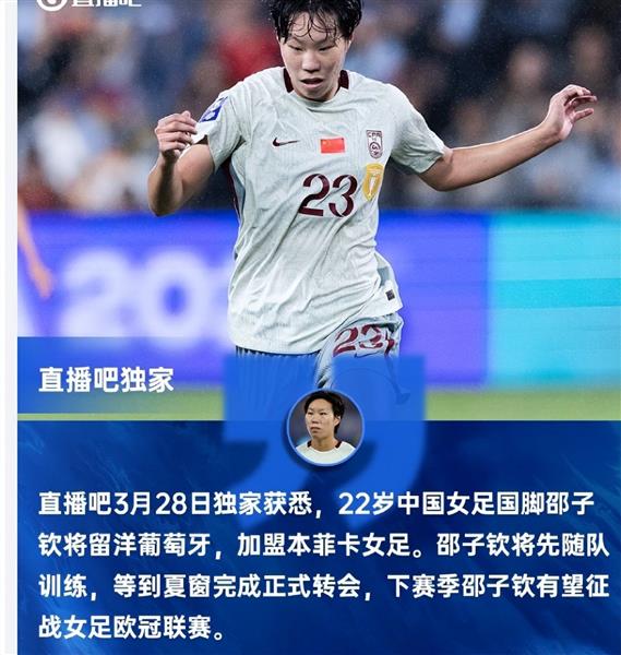 - 04-10邵子钦加盟本菲卡:揭开中国女足新篇章