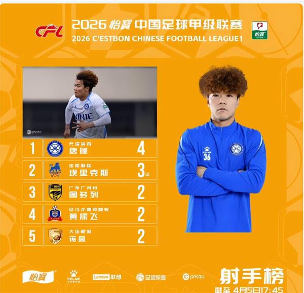 2026怡宝中甲第三轮,射手榜的硝烟味比球场上的草皮还浓!当其他球队还在纠结“保级”还是“超车”的时候,21岁的无锡吴钩少年唐瑞已经用4个进球把射手榜变成了自己的“个人秀”!大连鲲城的诺曼,虽然一球暂时排名第五,但这场射手榜的“神仙打架”远比我们想象的要刺激!如何看待这个射手榜的排名?